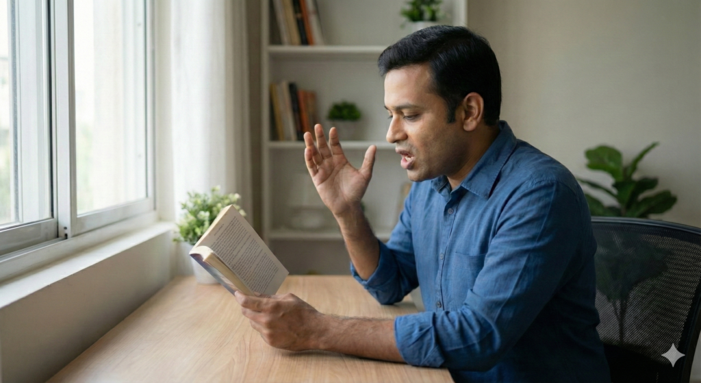 Reading, Pause और Self-Talk Practice हकलाने पर डर और सेल्फ-डाउट कम करने में मदद करती हैं। यह एक्सरसाइज़ के बाद का अगला स्टेप है, जो आपको असली बातचीत में आसानी से बोलने की तैयारी देता है।